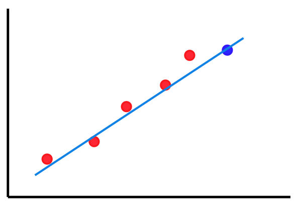 Puntu gorriek osatzen duten joera linealean oinarrituta, estrapolazioa egin da puntu urdinean.