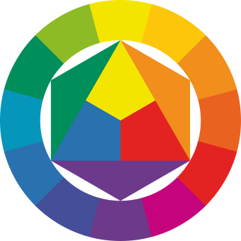 Oinarrizko hiru koloreak, erdiko hirukian.