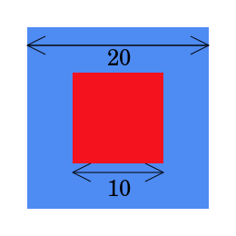 Koloreztatutako azaleran puntu bat zoriz aukeratuta, puntu karratu gorrian suertatzeko probabilitatea (10x10)/(20x20)=0.25 da, bi karratuen azaleren zatiketa alegia.